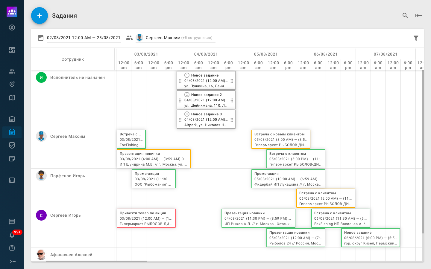 Что касается визитов, то их также назначают с помощью B2Field. Это удобно делать в планировщике, а уведомления о заданиях приходят сотрудникам через мобильное приложение.